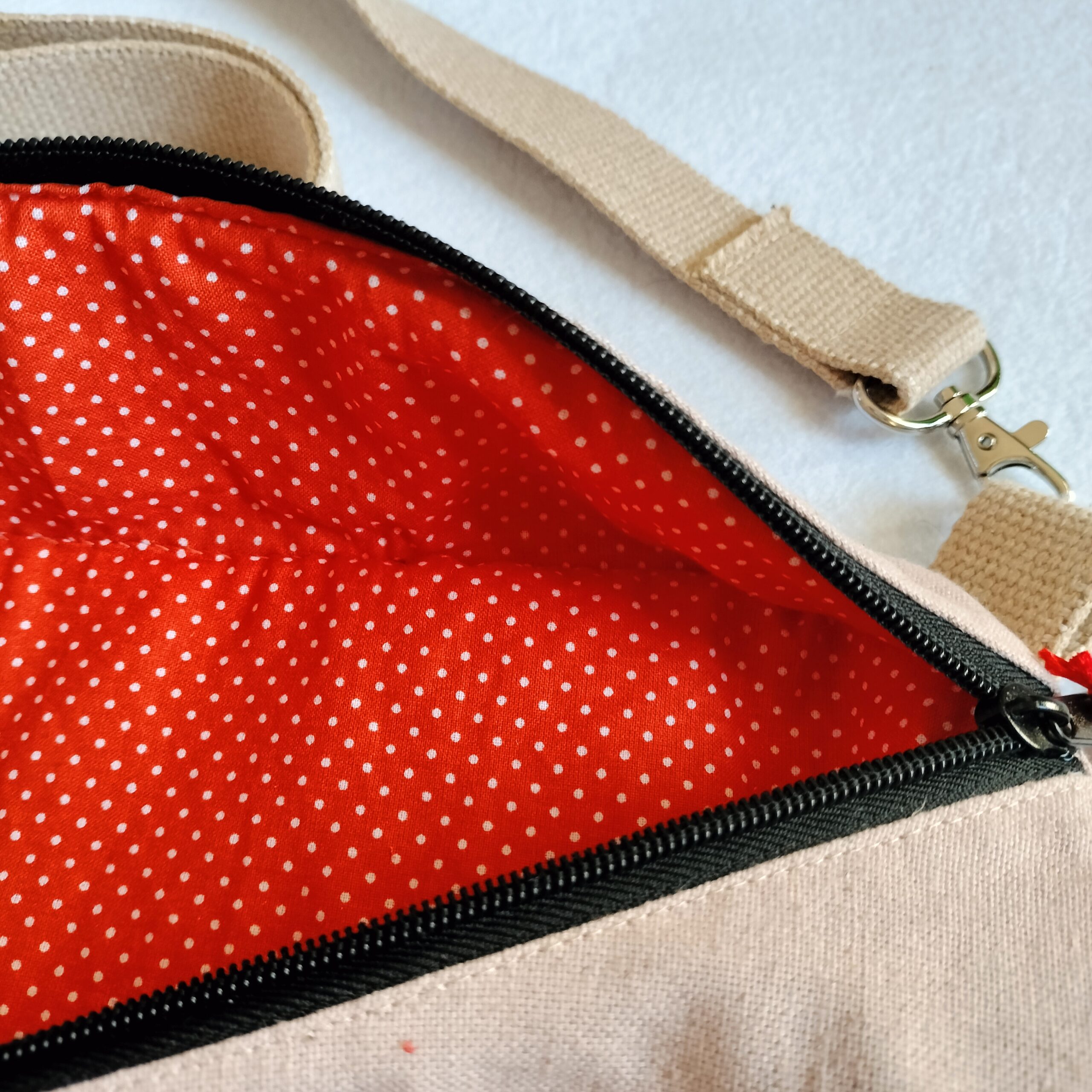 ✔️ Tancament amb cremallera i tiradors vermells que li donen un toc únic